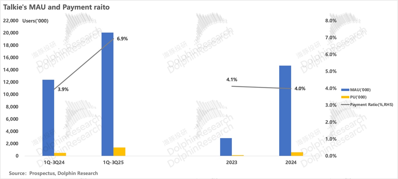 而在付费转化上,付费率同比增加 3pct 至 6.9%,打破 2023 年以来长期稳定在 4% 左右的瓶颈,大幅拉动付费用户同比增长 184% 至近 140 万人。