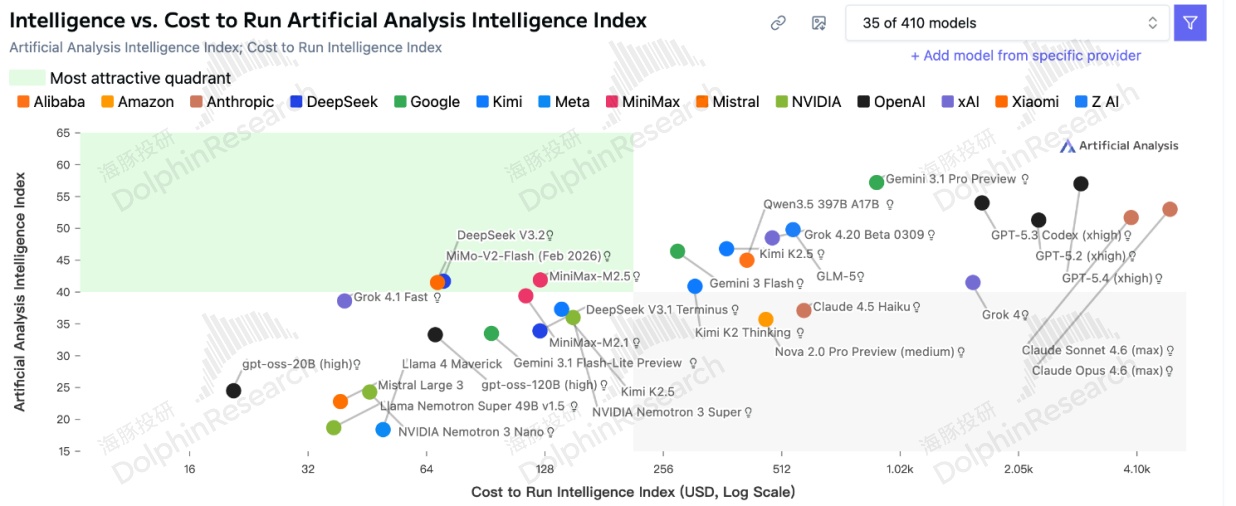 海豚君之前说过,AI 研发比拼的模型智能水平,但到推理落地的时候,与智能性同样重要的是,单位成本的智能程度。而叠加进去多模态的优点之后,单位成本下的智能化程度是开源模型中最高的。