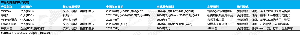 b) 全球商业化同步启动:一开始就是定位全球化的市场,因此推出的 AI 原生产品和 API 接口服务一开始就是全球发行。海外市场更强的付费能力,也给了 MiniMax 的模型研发更多的 “回血” 空间。
