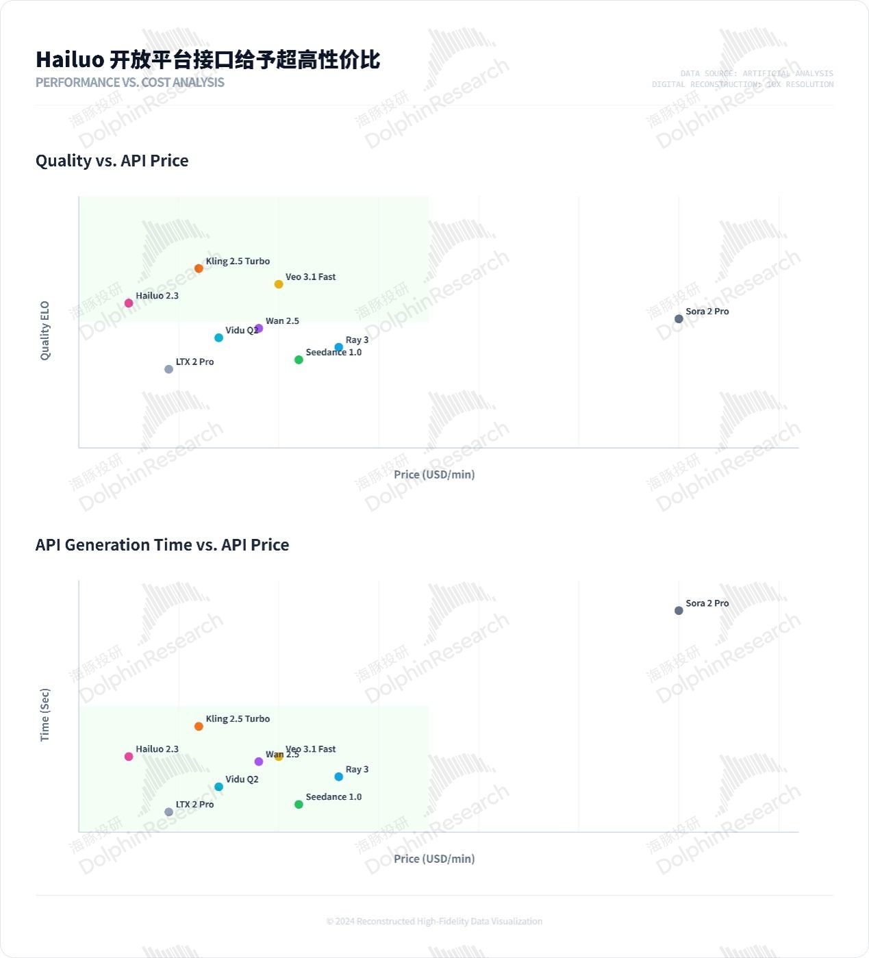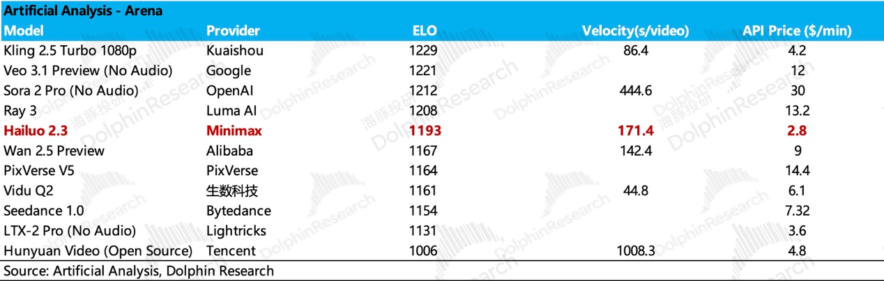视频生产平台背后的视频模型 Hailuo 2.3 在垂类模态中的行业竞争力比语音模型差一些,比语言模型强一些,属于是模型性能偏上且定价极致优惠的模型。