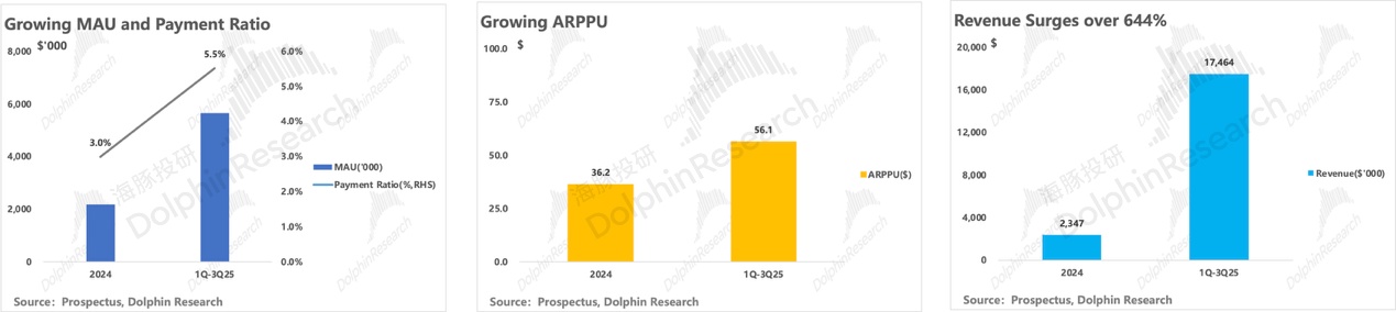 而且,由于海螺订阅定价相对较高,高 ARPPU 定价的前提下,支撑了 2025 年前九个月超 7 倍的营收爆发。