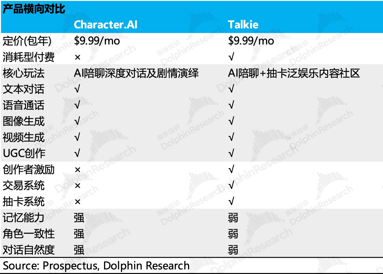 同时公司通过虚拟卡、礼物等产品设计,让 Talkie/星野不仅仅像是 AI 聊天工具,更像是融合了「陪伴 + 游戏 + 社交 + 交易」的社区娱乐平台。