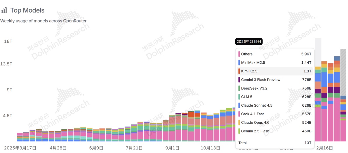 而公司在电话会中披露,2 月公司 ARR 已经达到了 1.5 亿美金,而四季度的月均 ARR 还在大约 1 亿美金上下;M2.5 文本模型发布后,2 月 Tokens 日均消耗量比 25 年 12 月增长了 6 倍。