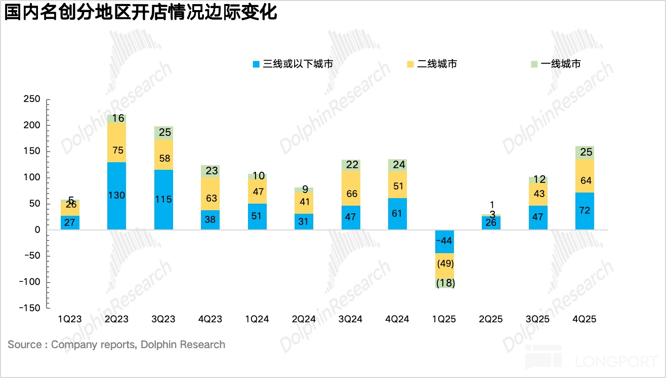 从开店节奏上,由于国内在一季度关停了大量低线城市的低店效门店导致了门店的负增长,二季度开始名创的开店速度环比提速,四季度达到年内开店高峰以二线、三线及以下的下沉市场为主。