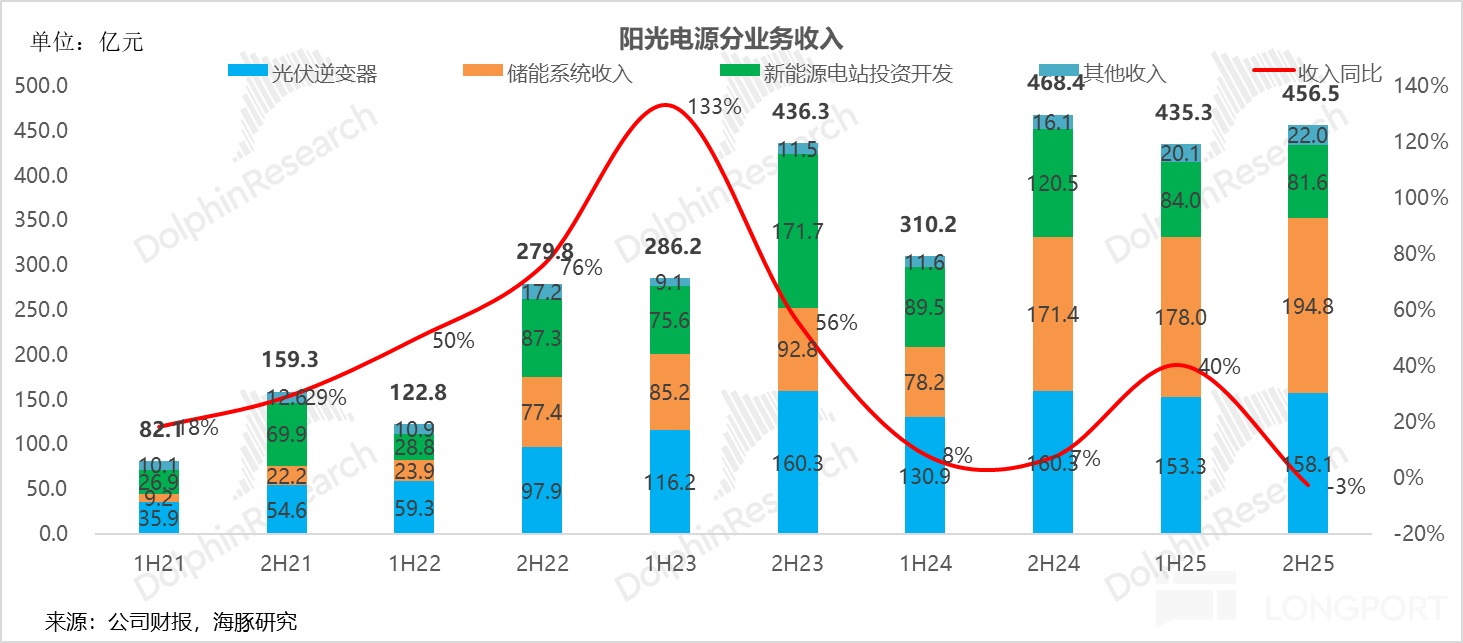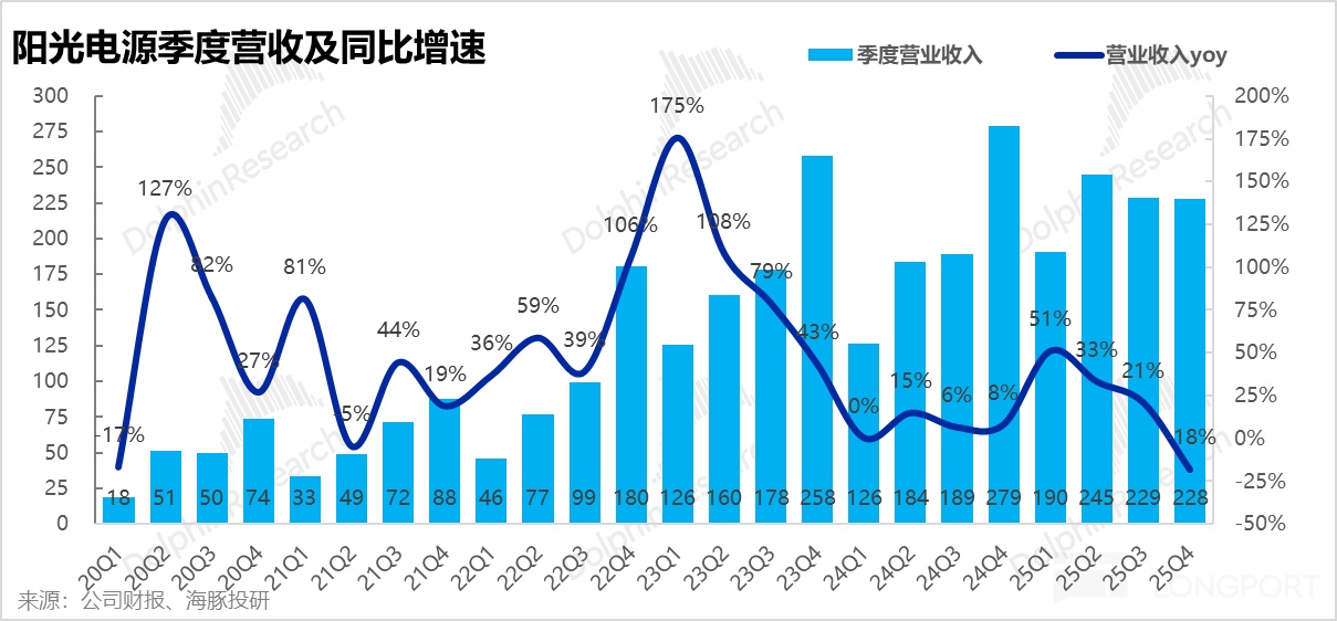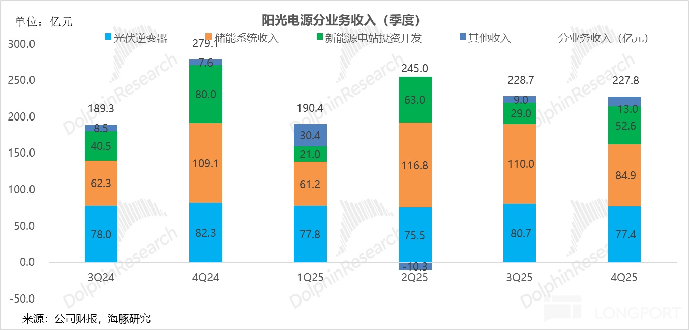 收入端的激增直接导致该低毛利业务在 Q4 总营收盘子中的占比环比大幅攀升 10 个百分点至 23%。但与此同时,作为公司盈利中枢、相对高毛利的核心主业(光伏逆变器与储能系统),其合计营收占比却环比大幅萎缩了 12 个百分点,降至 71%,收入结构的变差也直接拉低了整体的表观综合毛利率。