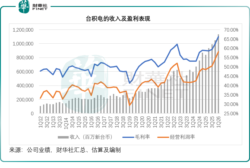 强劲的二级市场表现背后,是台积电基本面与盈利能力的持续跃升。作为全球AI算力竞赛中最明确的“卖铲人”,其不仅得益于英伟达、谷歌等科技巨头对先进制程芯片的迫切需求,更在产能利用率与定价权上展现出极强的护城河。