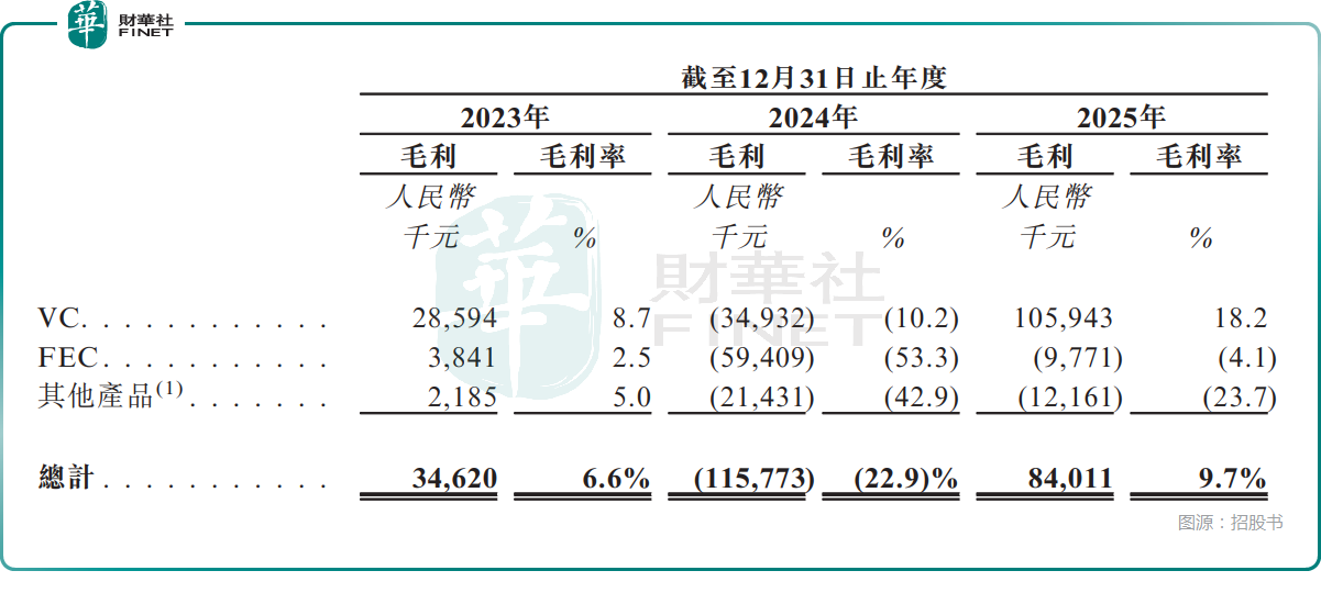 在毛利率上,VC的毛利率经历了一个“V型”反转,2025年达到了18.2%,是亏损收窄的核心驱动力,而FEC的毛利率2025年明显回暖,但依然为-4.1%。