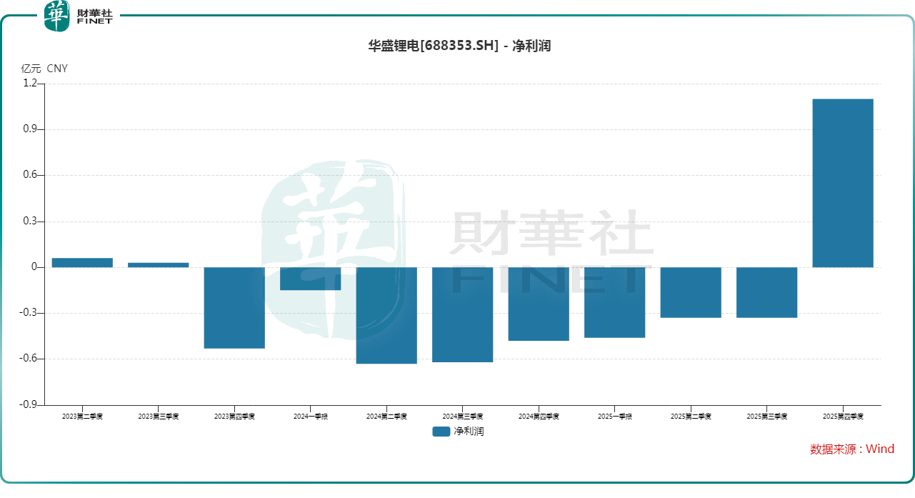 值得注意的是,结合A股业绩公告来看,华盛锂电2025年第四季度的业绩实现了大幅增长,利润端实现了扭亏,如下图所示。