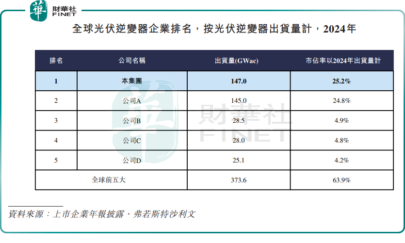 在光伏逆变器市场,阳光电源和华为已形成全球公认的“两强争霸”格局。弗若斯特沙利文数据显示,阳光电源光伏逆变器市占率连续十年全球领先,以2024年出货量计的光伏逆变器在全球的市占率约为25.2%,华为则以24.8%的市占率位居第二,两者市占率相差不大。