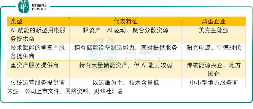 根据其提交的文件,中国基于分布式储能的新型电力服务市场参与者可分为四类: