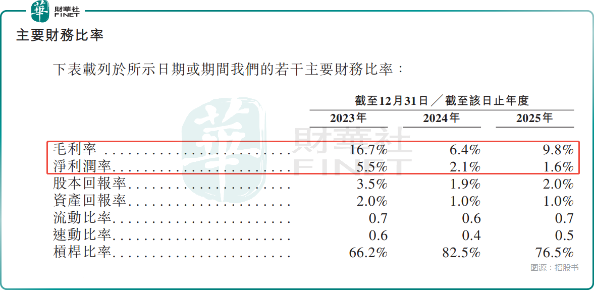 另外,其净利润率甚至还在一路走跌,从2023年的5.5%已经降至2025年的1.6%主要系2025年出现了1.69亿元的应占联营公司亏损(上年同期是4.41亿元联营利润),以及财务费用、行政开支费用增加等因素。