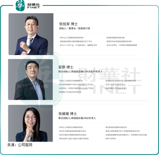 公司核心管理团队堪称科学家天团。创始人、董事长兼首席执行官张旭家博士,执行副总裁兼生产负责人翟鹏博士,执行副总裁兼研发负责人张媛媛博士,均拥有顶尖医药学科背景,并曾在全球减肥药龙头诺和诺德(NVO.US)担任核心研发与管理职务,具备深厚的行业积累与技术视野。