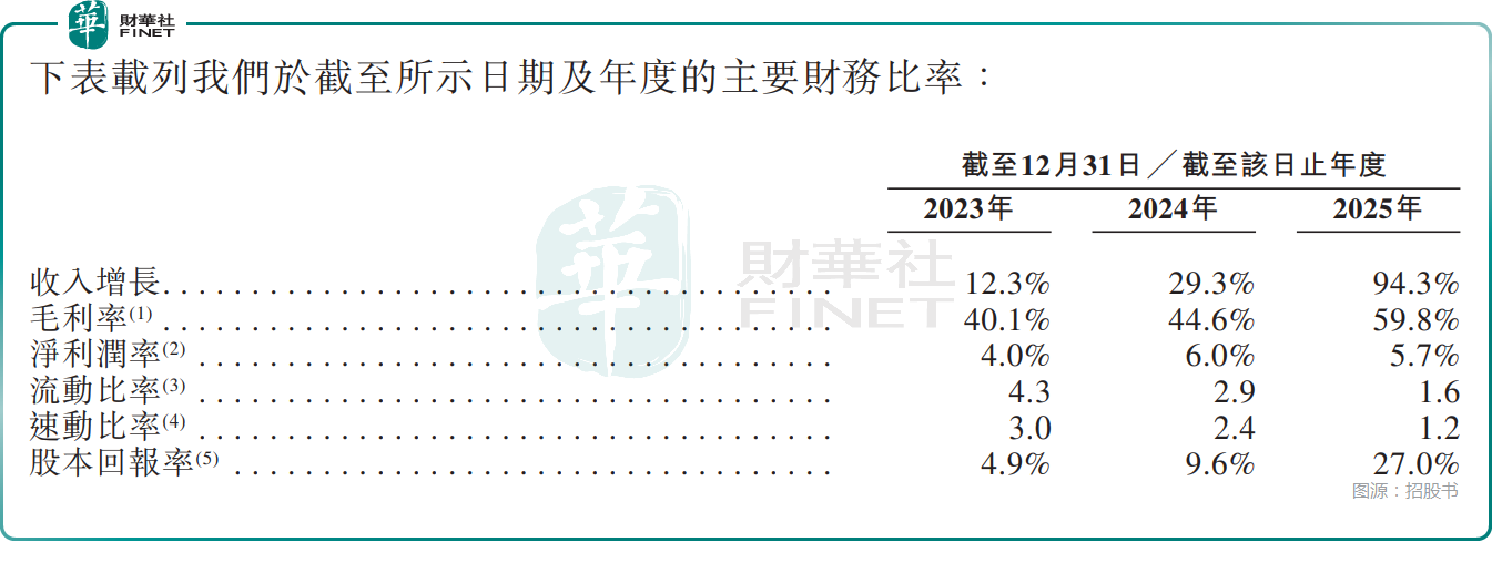 数据显示,若羽臣的总收入由2023年的13.66亿元增至2025年的34.32亿元,期间年复合增长率为58.5%,年度净利润则由2023年的5429.0万元增至2025年的1.94亿元,期间年复合增长率为89.2%毛利率也从40.1%连续提升至2025年的59.8%。