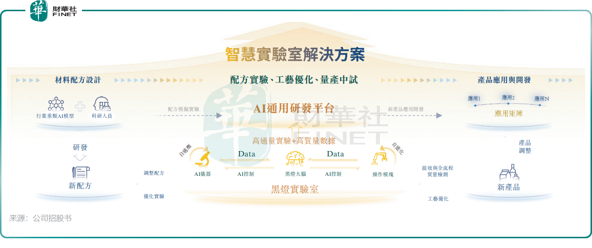 公司的核心业务包括智慧实验室解决方案以及黑灯实验室解决方案。其中,黑灯实验室解决方案围绕智慧实验室平台,集成人工智能并融合多元具身智能机器人,实现实验程序的自动化执行。依托通过高质数据形成的自主学习及自主演化能力,该系统现具备主动思考与决策能力。公司表示,其是为数不多能交付全生命周期黑灯实验室解决方案的实验室解决方案提供商之一。