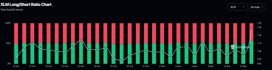 Parallel dazu spiegelt sich die neu entdeckte Story auch in der Marktpositionierung wider. Laut einem Überblick, auf den sich der ursprüngliche Bericht bezieht, verzeichnen sowohl Spot- als auch Futuresmärkte vermehrt große Kauforders – ein Hinweis darauf, dass größere Adressen XLM wieder aktiver spielen. Auf der Derivateseite sticht vor allem die Long-to-Short-Ratio von 1,30 ins Auge, der höchste Wert seit über einem Monat: Mehr Marktteilnehmer sind netto long als short, was den Ausbruchsversuch über 0,297 US-Dollar zwar unterstützt, die Positionierung aber gleichzeitig anfälliger für Fehlausbrüche und kurze, scharfe Bereinigungen macht.