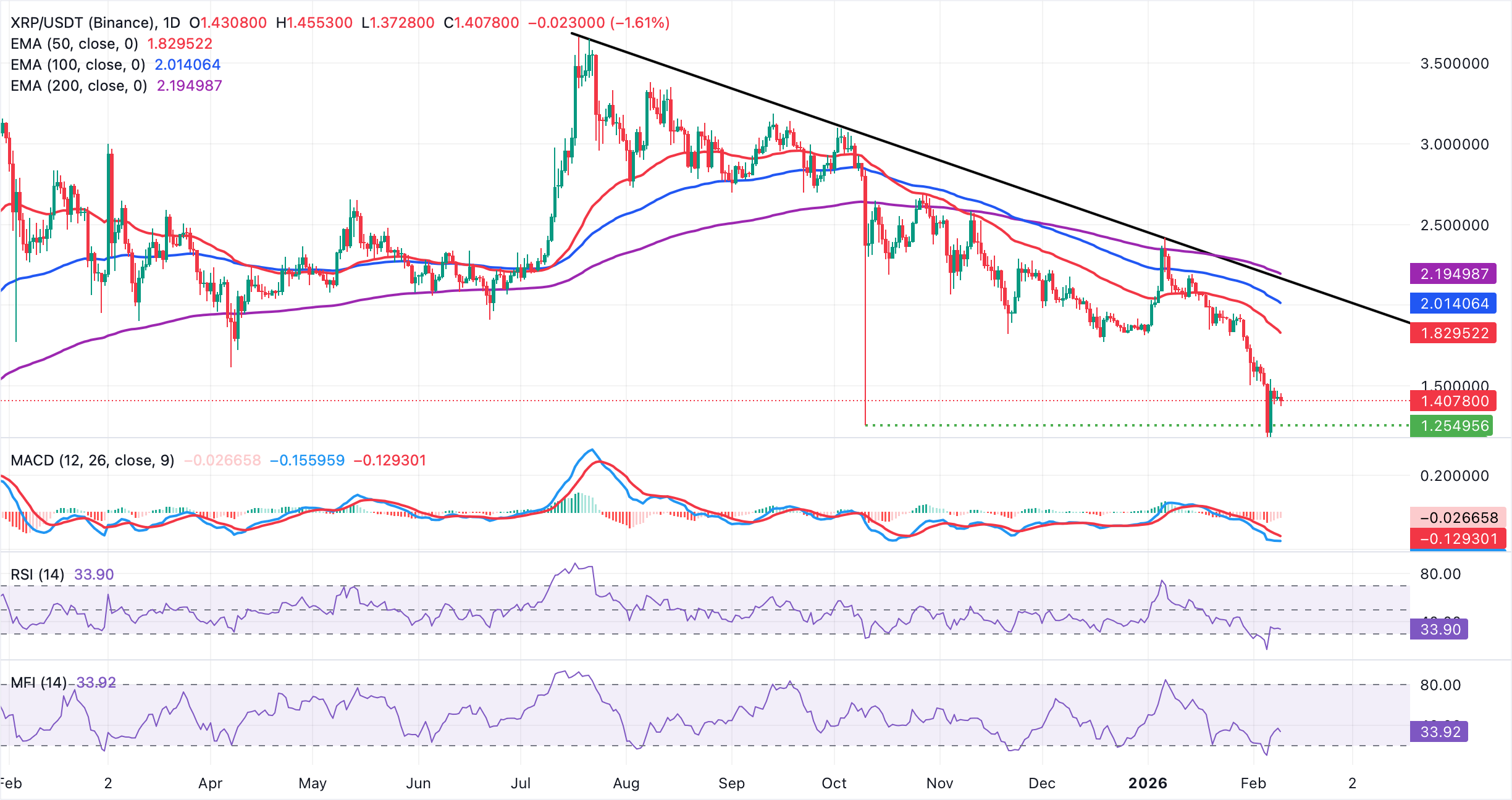 Doch genau hier wird es brisant: 1,40 Dollar ist nicht irgendeine Zahl. Es ist die Marke, an der sich jetzt entscheidet, ob XRP Boden findet – oder erneut abstürzt.