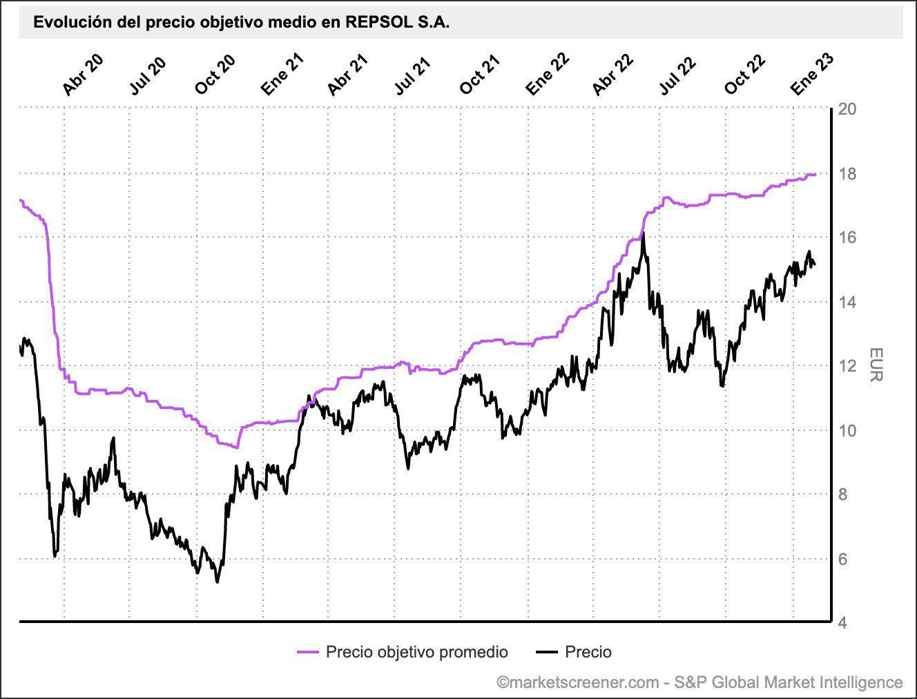 Veamos por ejemplo la media de precios objetivo con lo que nos marca el propio precio de REP: