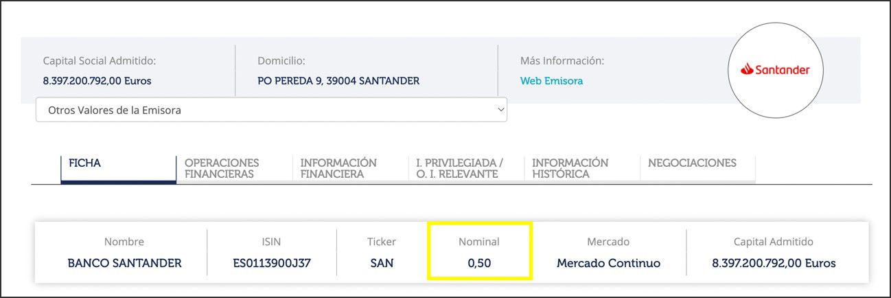 Posteriormente se acometió un Split4 que dividió a la acción en 2, haciendo que de esta forma el nominal de cada título pasase a ser de 0,50 €, exactamente al mismo valor en que hoy día se encuentra.