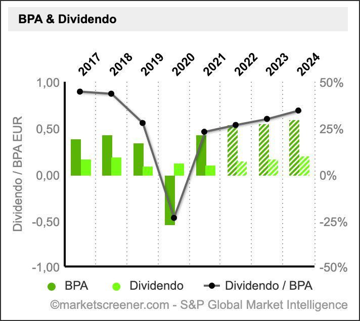 A medio plazo ya las estimaciones sobre PER y BPA resultan más dispares, si bien podríamos trazar una media que mantuviera el BPA en 0,61 y el PER en el 6,26, aunque algunos analistas ofrecen resultados que no casarían entre sí.