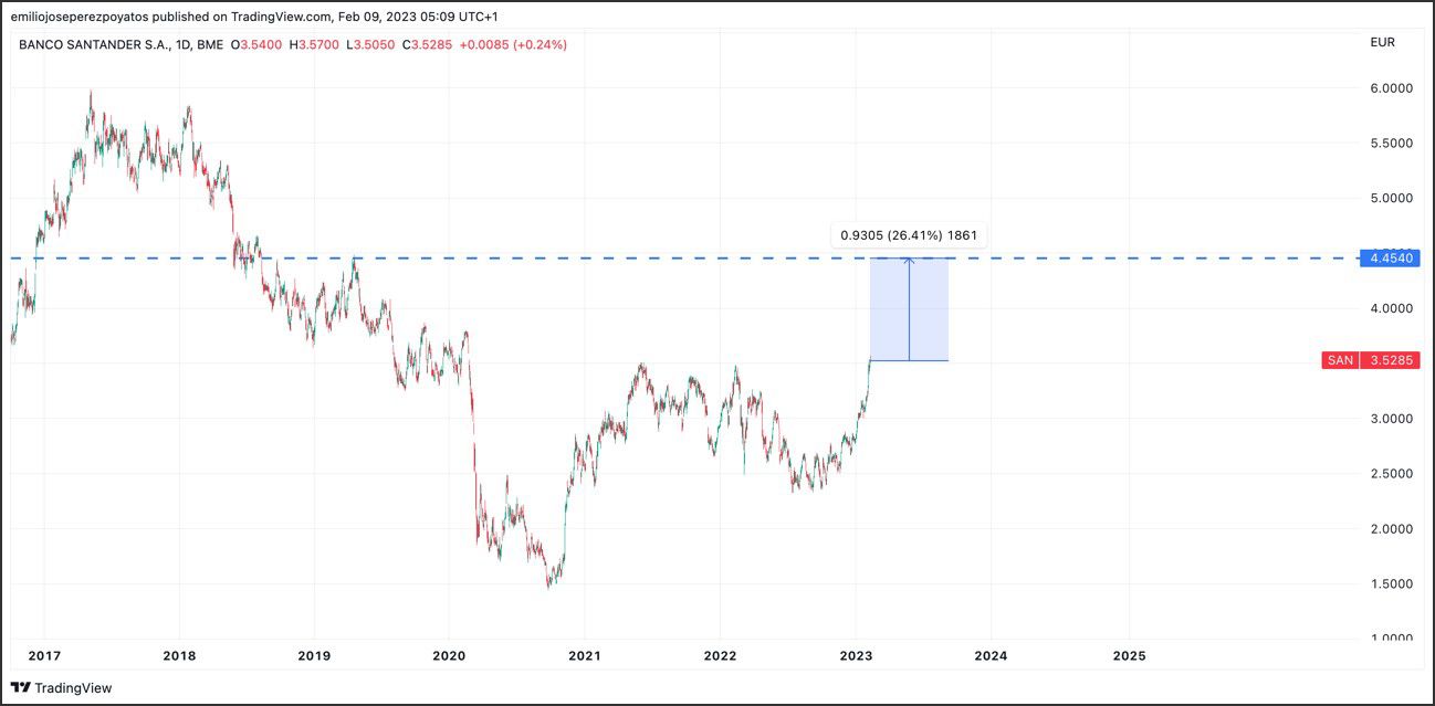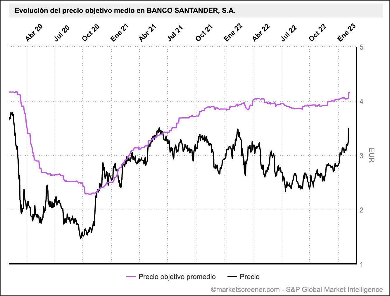 Precio objetivo y cotización de SAN comparadas en el tiempo