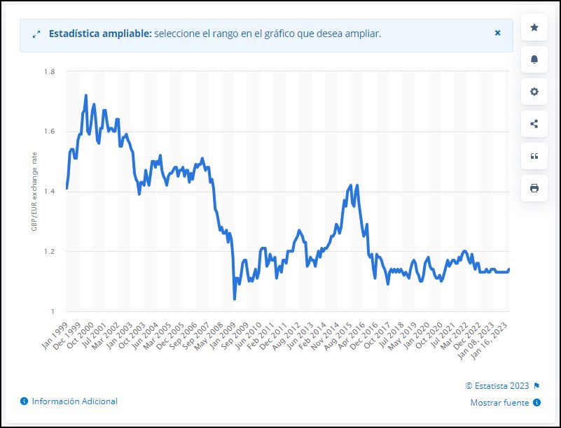En 2022, la libra valía desde 1,08 € hasta 1,21 € frente al euro.