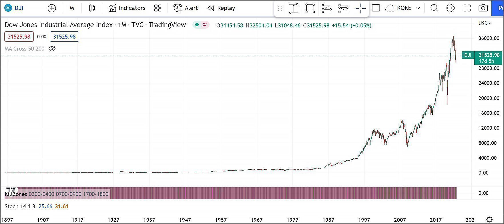 En contraparte, el índice se ha sabido reponer de todas sus caídas, tras la del 2008, se recuperó en 1402 días y superó las cotizaciones en 2019 llegando a una subida de un 307%. Del covid 19 se repuso en 215 días y posteriormente concretó un alza de un 69%. Actualmente no se sabe cuánto más pueda bajar el Dow Jones, lo que si se tiene la certeza es que en cuestión de meses se superará el último máximo histórico de 36,952.65 USD en enero del 2022.