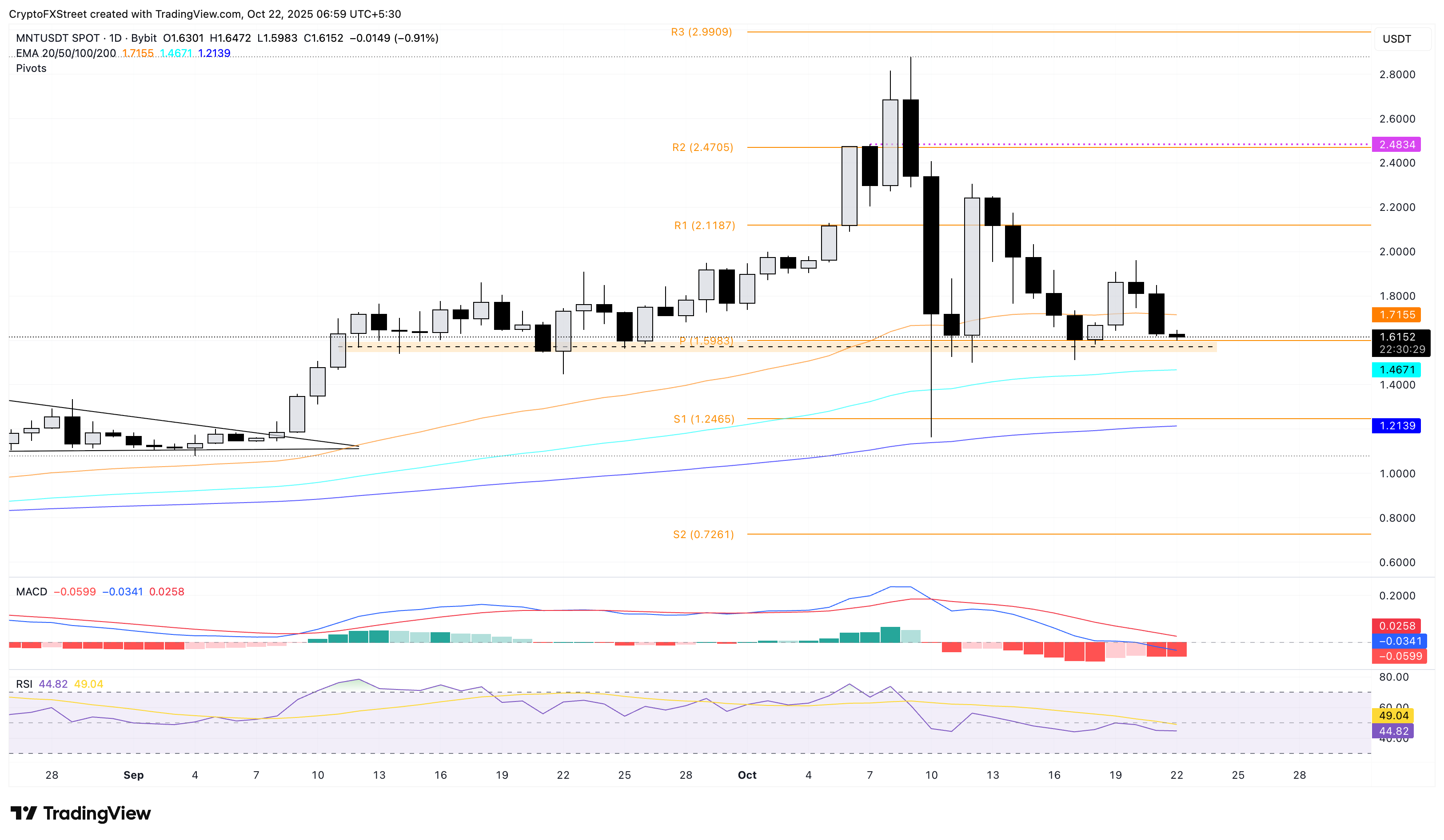 Mantle baja un 1% en el momento de la prensa el miércoles, extendiendo la caída por tercer día consecutivo, lo que representa una pérdida del 13% hasta ahora esta semana. El retroceso en curso pone a prueba la zona de soporte de 1.59$, que proporcionó múltiples reversiones a principios de este mes, arriesgando una posible ruptura.