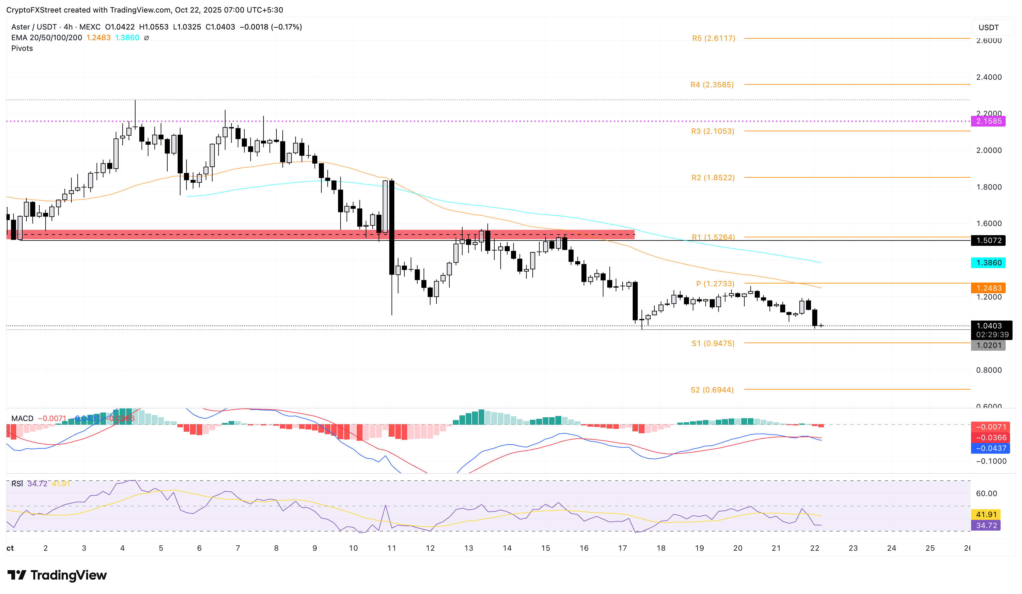 Gráfico de precios de ASTER/USDT de 4 horas.