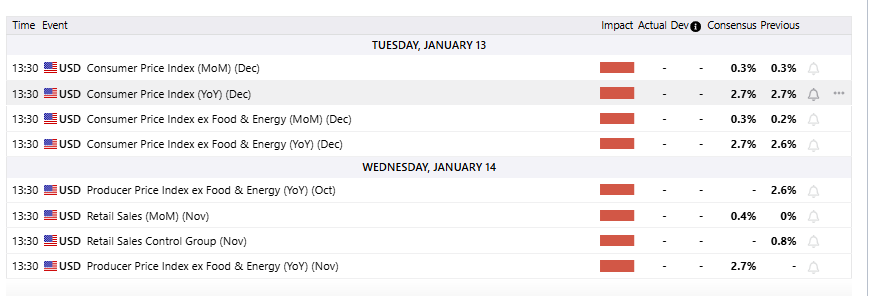 Los datos del IPC de EE.UU. para diciembre están programados para ser publicados a las 13:30 GMT el martes. Se espera que el IPC general suba un 0.3% en el mes, el mismo ritmo que en noviembre, con la tasa anual manteniéndose estable en 2.7%.