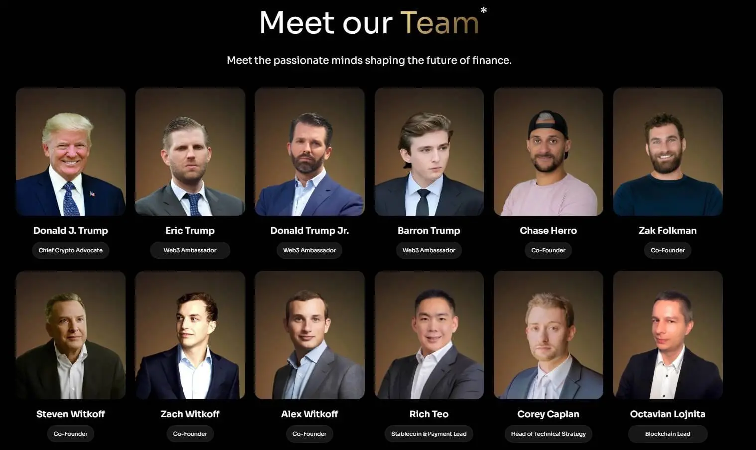 El proyecto de criptomonedas se lanzó en otoño de 2024, con eldent de Estados Unidos y sus hijos, Eric, Trump Jr. y Barron, figurando en la página de miembros del equipo como cofundadores, junto con Chase Herro, Zak Folkman y la familia Witkoff.