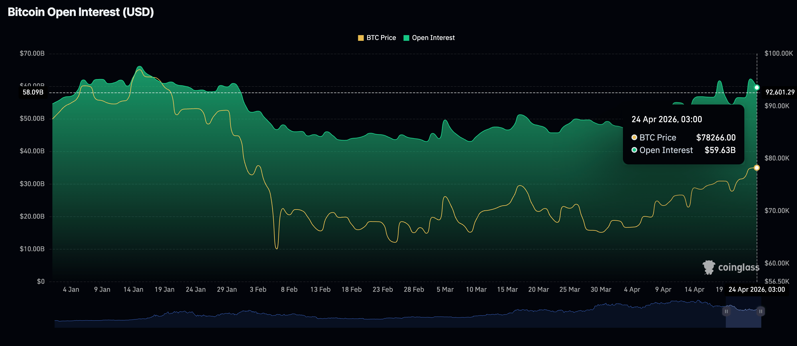 El interés minorista en Bitcoin está perdiendo impulso, ya que el interés abierto (OI) en futuros perpetuos se reduce a 59.630 millones de dólares el viernes, desde 62.670 millones de dólares el día anterior.