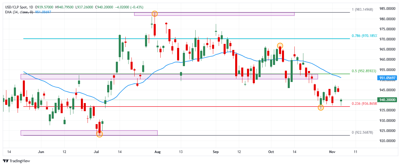 En este sentido, el Peso chileno gana tracción ante el Dólar estadounidense, mientras que el USD/CLP se desliza un 0.38% diario, alcanzando mínimos del 27 de octubre en 937.2600.