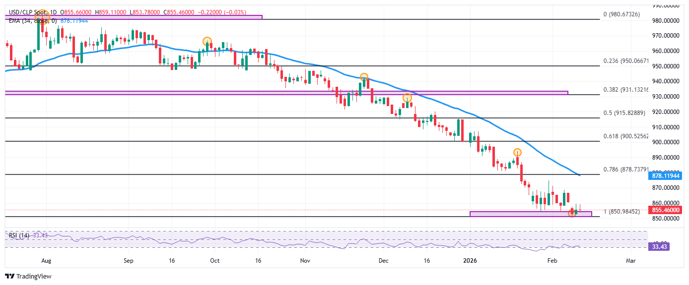 Ante este escenario, el Peso chileno opera con ganancias marginales, mientras que el USD/CLP retrocede un 0.04% el día de hoy, operando en 855.43