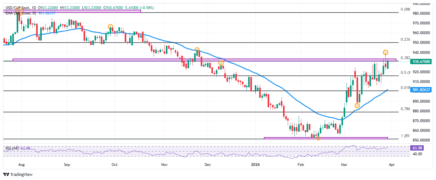 En este contexto, el Peso chileno cotiza en zona de pérdidas, en tanto que el USD/CLP repunta un 0.50% en la jornada del lunes, operando al momento de escribir sobre 930.39