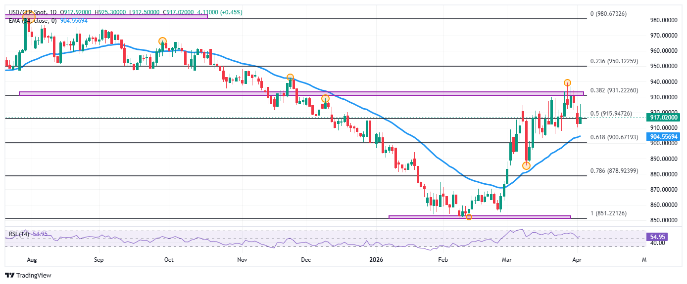 El USD/CLP marcó un mínimo del día en 912.50, donde encontró compradores que llevaron a paridad a máximos del 31 de marzo en 925.30. En estos momentos, el USD/CLP opera sobre 917.02, ganando un 0.43% en el día.