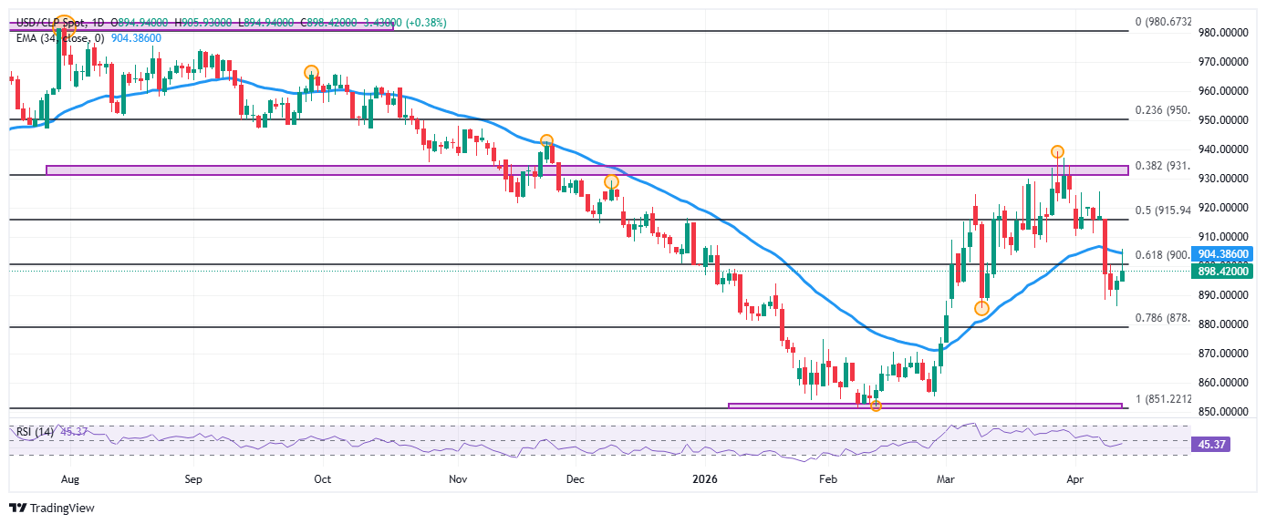 Ante este escenario, el Peso chileno opera en terreno negativo, mientras que el USD/CLP repunta un 0.37% en el día, cotizando al momento de escribir sobre 899.42.