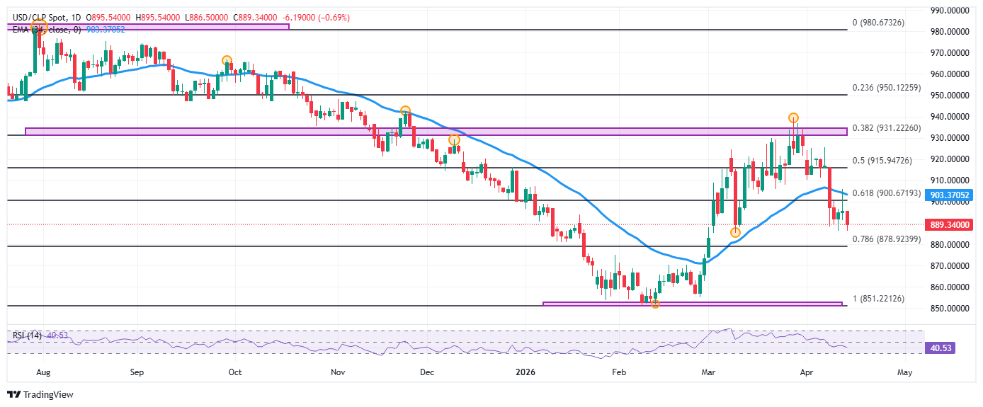 El USD/CLP registró un máximo del día en 895.54, encontrando vendedores agresivos que arrastraron la paridad a mínimos del 10 de abril en 886.50. En estos momentos, el USD/CLP cotiza en 889.52, perdiendo un 0.67% el día de hoy.