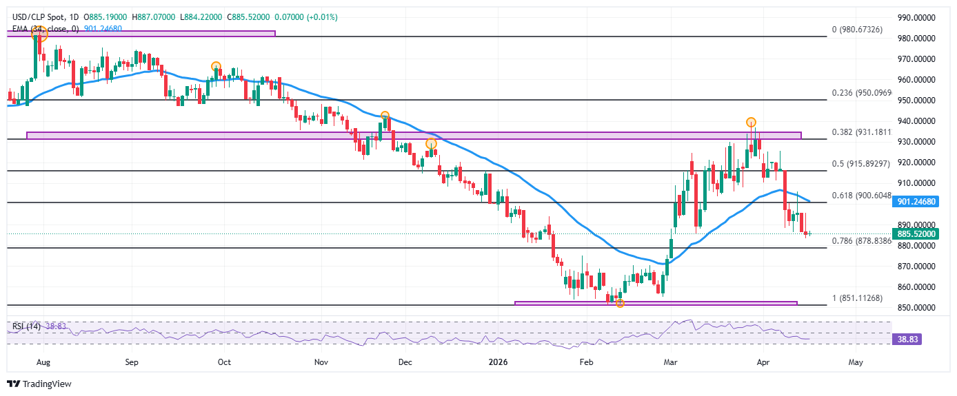 El Peso chileno cotiza con pérdidas marginales, en tanto que el USD/CLP sube un 0.07% diario, cotizando al momento de escribir en 885.07.