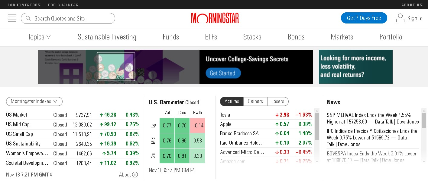 Existen diversas páginas de información económica que ofrecen acceso gratuito a los estados financieros y demás datos básicos de cualquier compañía que cotice en las bolsas principales del mundo. Vamos a recomendarte la página Morningstar.com, por la gran cantidad de datos que nos ofrece: