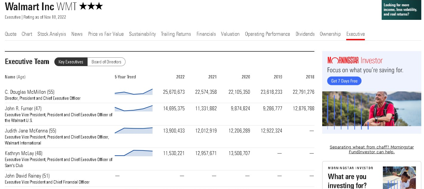 Para extraer la información sobre el equipo directivo vamos al link "Executive" en el menú principal: