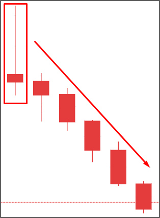 Una vela bajista indica un claro control de lo vendedores, probablemente se tocó alguna resistencia y después el precio rebota hacia abajo, también puede significar que los compradores tenían establecido algún nivel de ganancias, las obtuvieron y ahora decidieron salir del mercado sabiendo que el activo no podía seguir subiendo, los compradores salen del mercado o incluso se ponen a vender.
