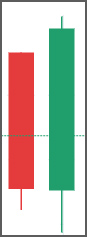 | Patrón de 2 velas, la segunda envuelve a la primera. La segunda vela tiene un cuerpo más grande que la primera en la dirección contraria del mercado. | Posible cambio de tendencia. Patrón alcista indicaría que el mercado cambiará de bajista a alcista. Patrón bajista indicaría que el mercado cambiará de alcista a bajista. |