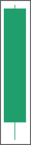 | Patrón de 1 vela, cuerpo muy largo y mechas muy cortas o inexistentes. | Seguimiento y fortaleza en la tendencia. Patrón alcista indica pocos retrocesos y continuación de mercado al alza. Patrón bajista indica pocos retrocesos y continuación de mercado a la baja. |