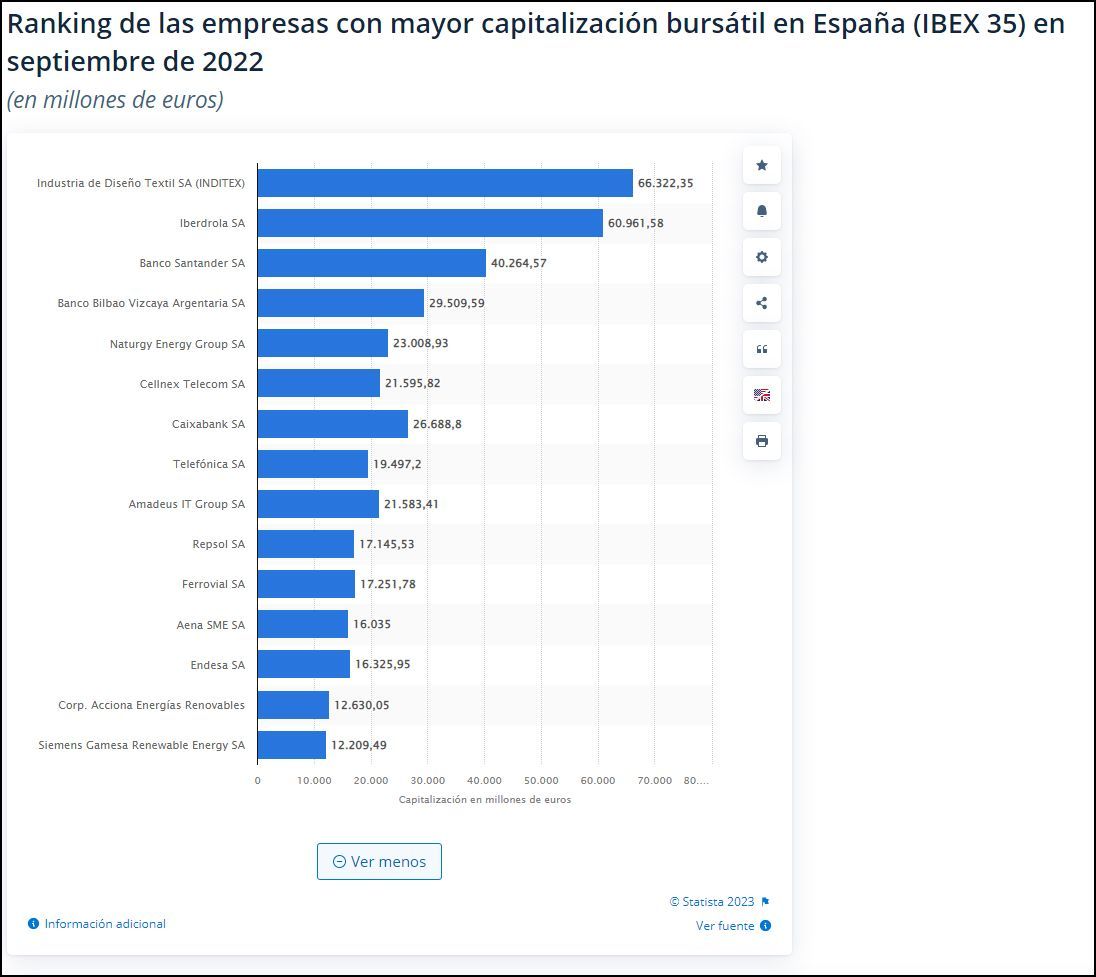 En la cotizacion Bolsa de Madrid mercado continuo hay muchas empresas multinacionales destacadas de reputación mundial, como Telefónica y Ferrovial.