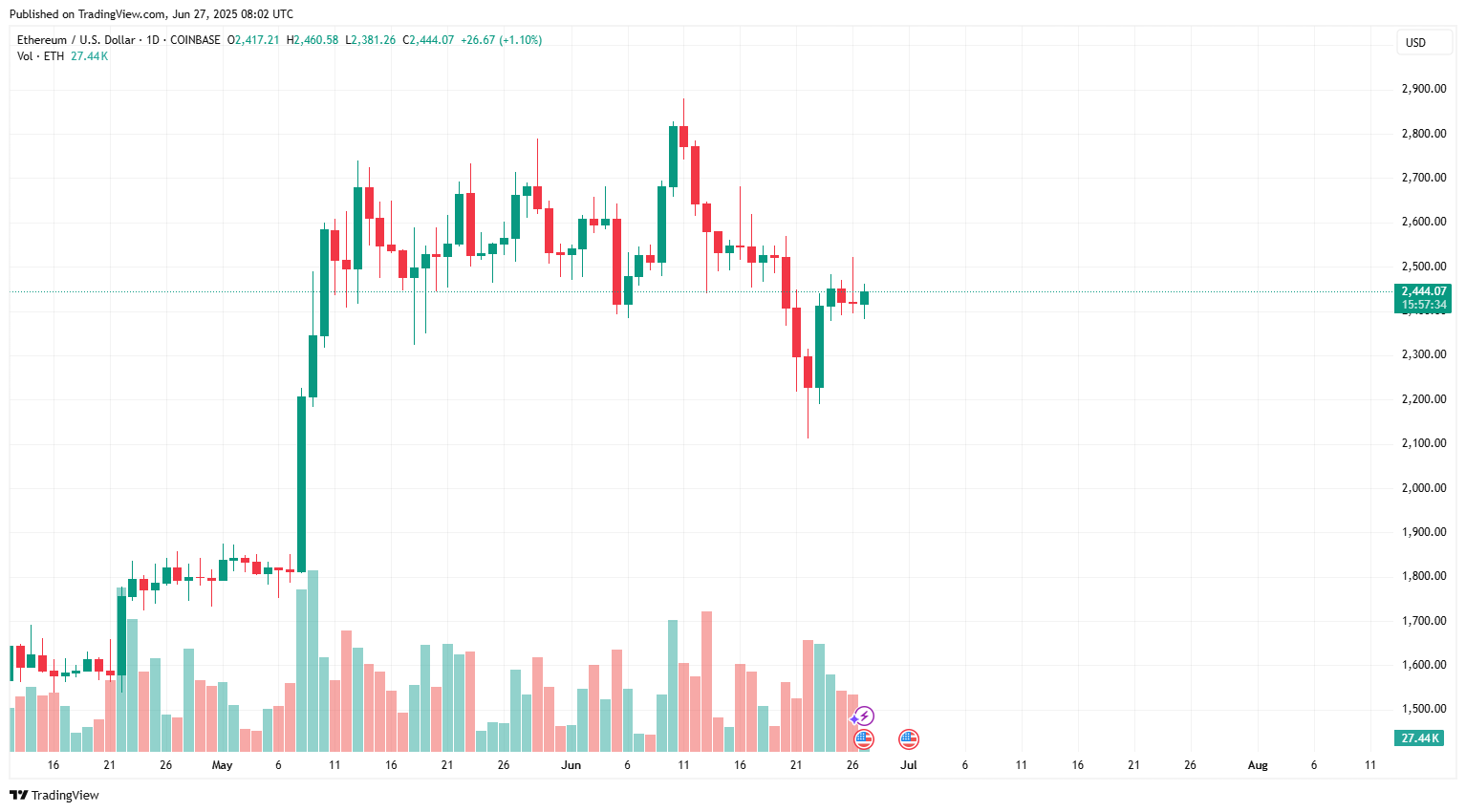 Ethereum (ETH) fell nearly 1% in early trading on Friday. As of this writing, Ethereum is trading around $2,440. So why is Ethereum still struggling to break through $2,500 after tensions in the Middle East have eased?
