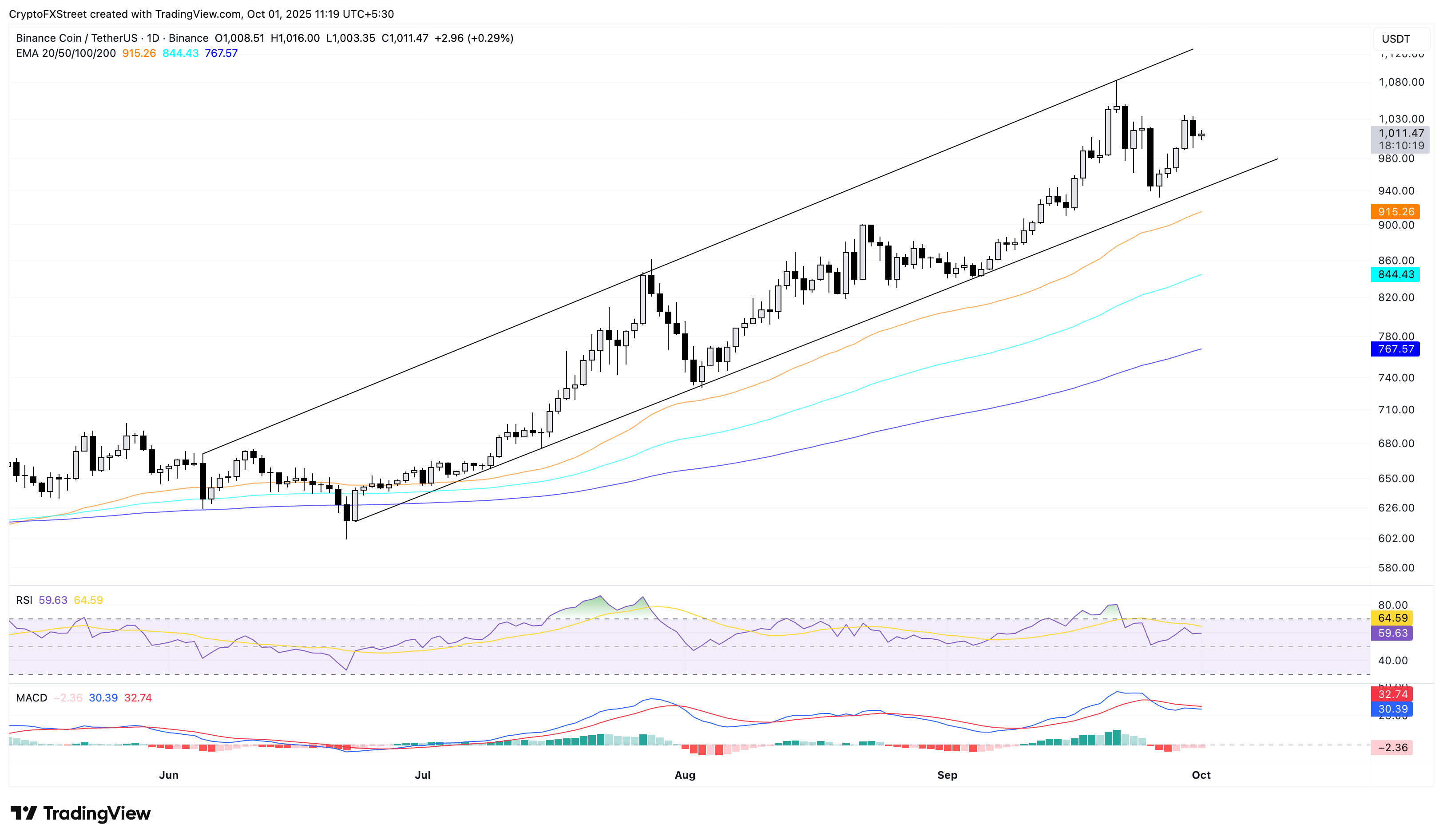 BNB, previously known as Binance Coin, remains largely unaffected by the recent hack. The token holds above the $1,000 psychological level at press time on Wednesday, following a 2% drop from the previous day.