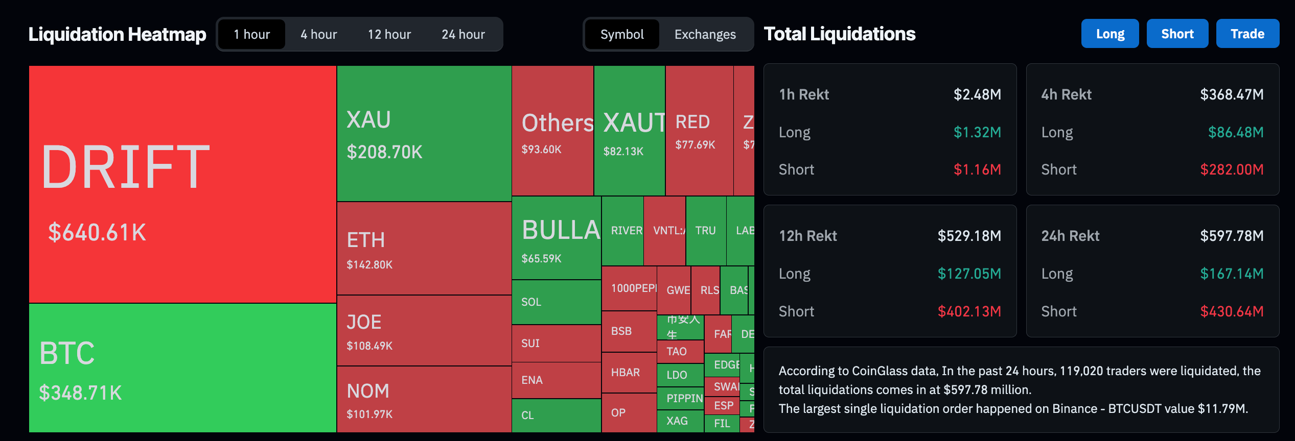 Crypto market liquidations data. Source: CoinGlass