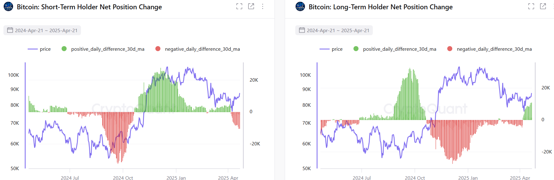 BTC LTH vs STH Net Position Change. Source: CryptoQuant