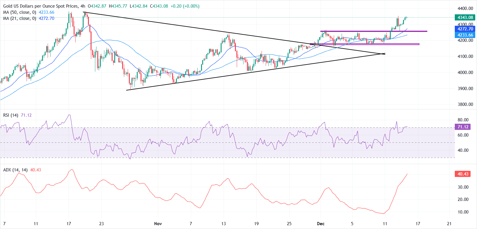 • Technicals remain constructive, with bulls targeting a break above $4,350.