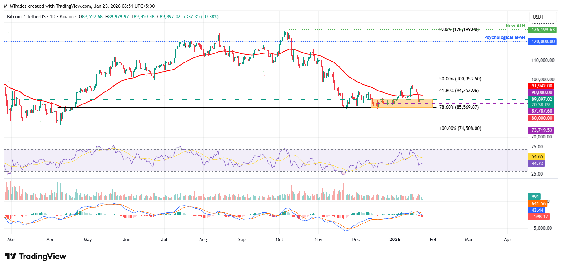 On the other hand, if BTC closes below the $87,787 support on a daily basis, it could extend the fall toward the lower consolidation boundary at $85,569, which coincides with the 78.6% Fibonacci retracement level.